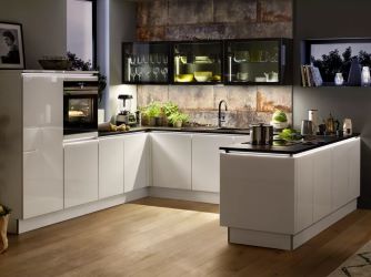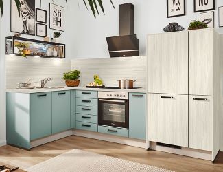 - L-vormige keuken: deze keukens hebben twee zijden en zijn ook bekend als hoekkeukens. Flexibel in de planning en gemaakt voor nagenoeg elke ruimte. Boven- en onderkasten zijn flexibel ontworpen en bieden voldoende opbergruimte.